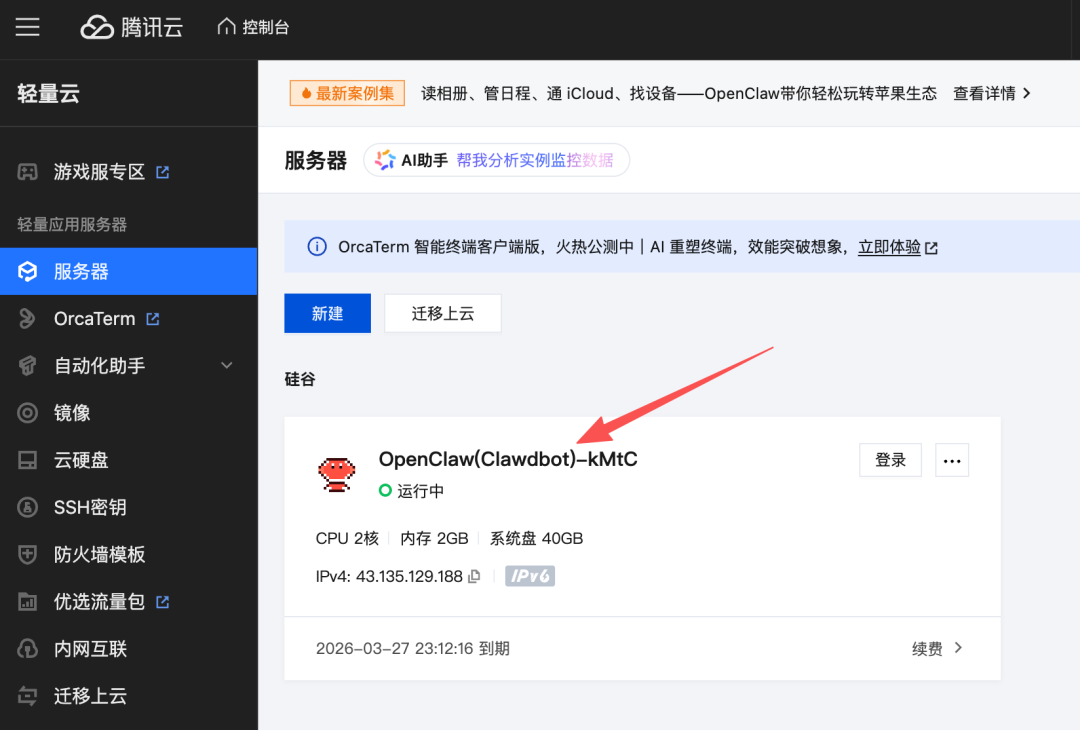 到这里我就不赘述了,没操作过这一步的可以去看我之前那篇在云服务器配置 OpenClaw 的教程:《》