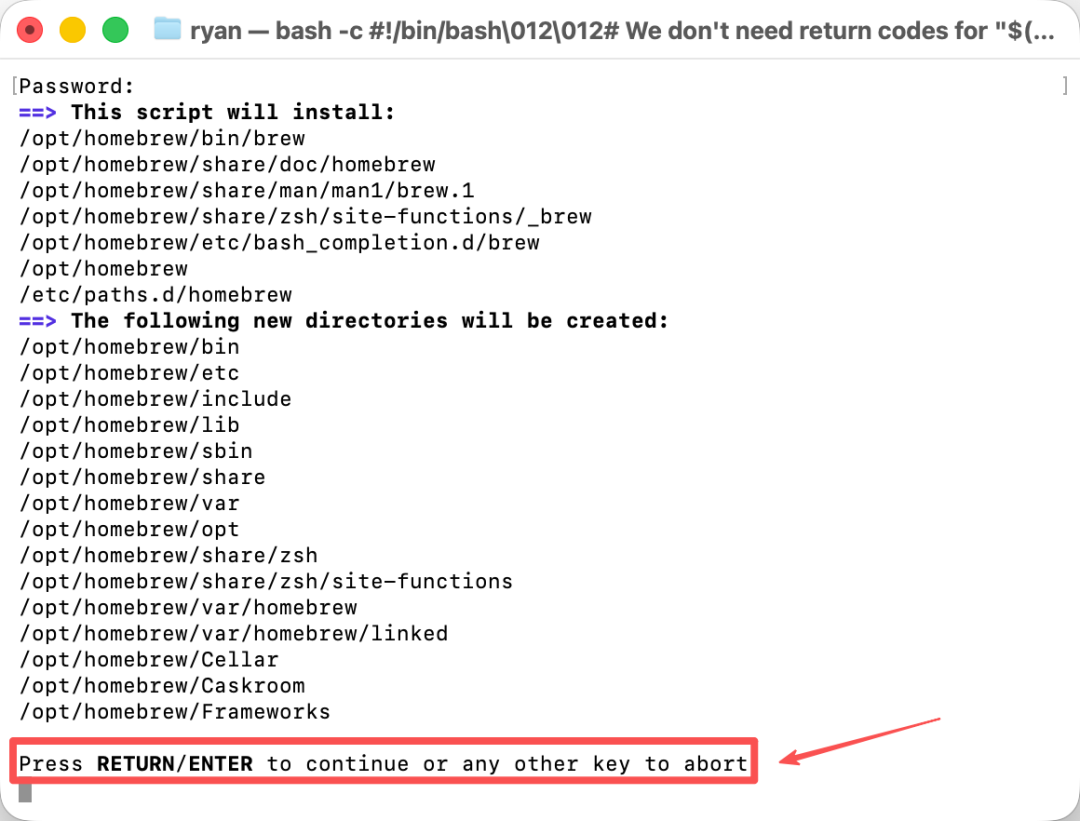 要安装 Homebrew,我们就在终端命令行里输入下面这段指令,看不懂没关系(我也看不懂),直接复制粘贴。