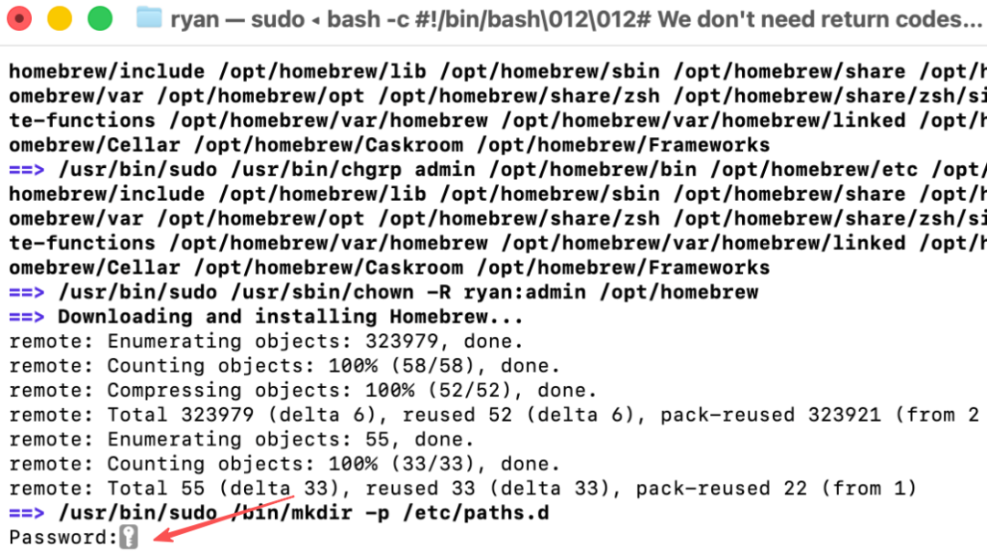安装成功后,你会看到终端命令行恢复成让你输入的状态,看到这个提示后,说明安装成功了。