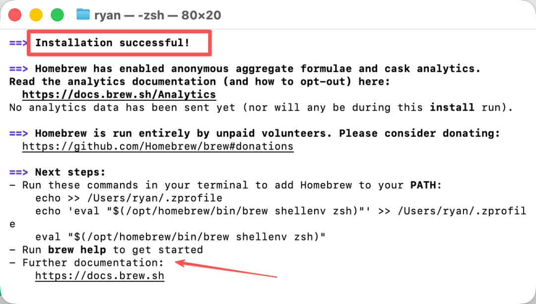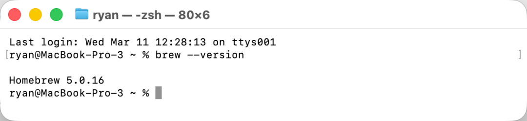 如果输出了类似 Homebrew 5.0.16 的版本号,说明这个软件商店管理器就安装成功了。