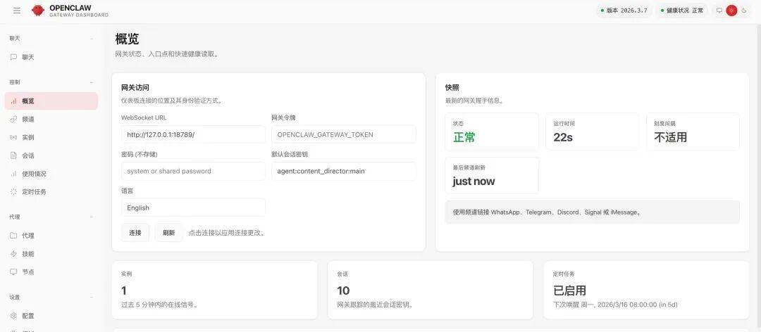 这里,就是你本地电脑 OpenClaw 的后台了。