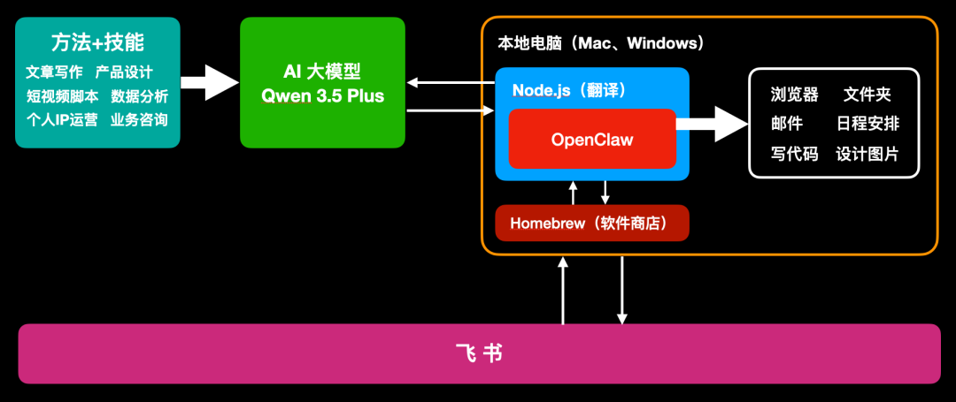 到这一步,我们就理解了 OpenClaw 的运行环境以及它是如何控制本地电脑的大致逻辑了。
